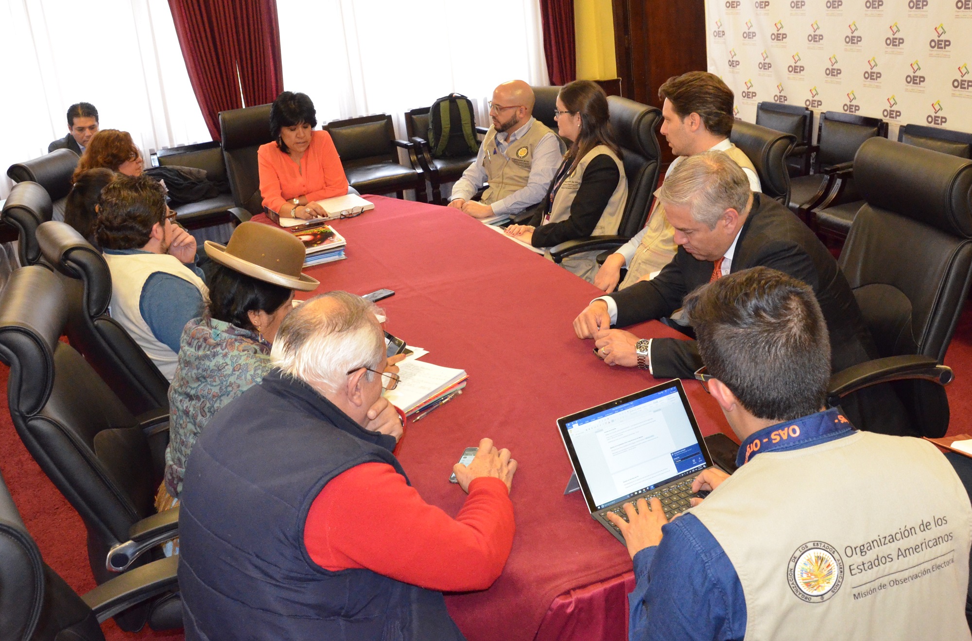 La Presidenta del TSE, Katia Uriona Gamarra, manifestó su satisfacción por la participación de la OEA y las misiones de la Unión de Naciones Suramericanas (UNASUR), Asociación Mundial de Organismos Electorales (A-WEB), Unión interamericana de Organismos Electorales (UNIORE), y representantes del Observatorio de la Democracia del Parlamento del Mercado Común del Sur (MERCOSUR), que acompañarán esta elección, y reiteró que desde el Órgano Electoral Plurinacional se garantizarán todas las facilidades para el cumplimiento adecuado del trabajo de observación electoral del proceso.