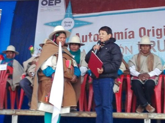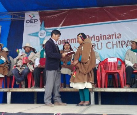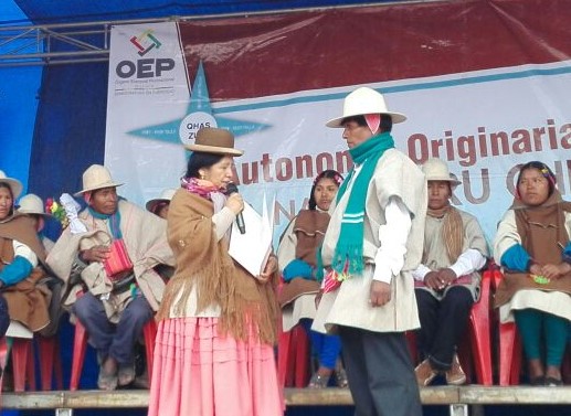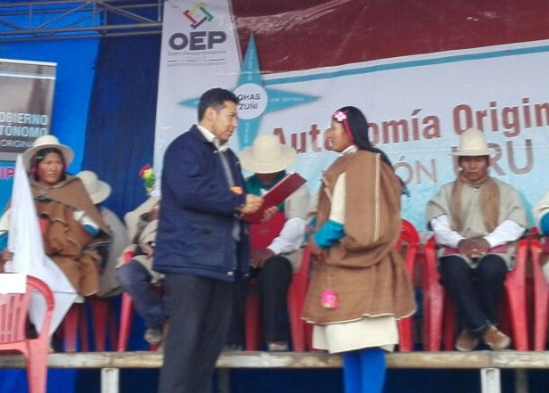 “Estamos dando un paso histórico en nuestro país y seguro será el ejemplo para otras naciones indígenas”, expresó el presidente del Tribunal Electoral Departamental (TED) de Oruro, Rudy Huayllas, durante la lectura de la Resolución que acredita a las autoridades para ejercer sus cargos.