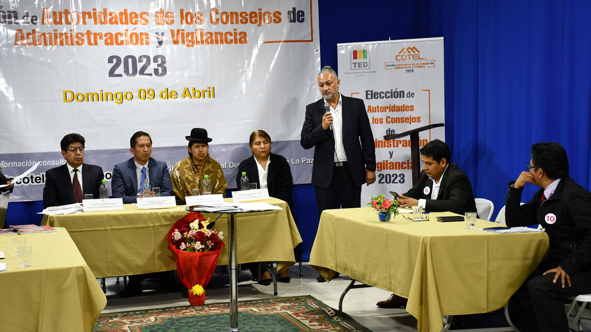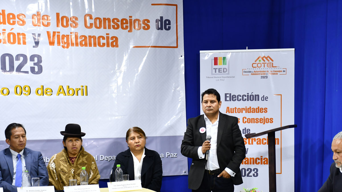 La inauguración oficial del ciclo de presentación de propuestas estuvo a cargo del vicepresidente del TED La Paz, Antonio Condori, que a propósito del acto señaló: “En este espacio se ha comenzado, hoy para que los socios asistan informados a las urnas y asimismo las y los candidatos presenten su propuesta, su programa, e intercambien algún criterios, para que se les conozcan y así Cotel tenga un nuevo rumbo”.