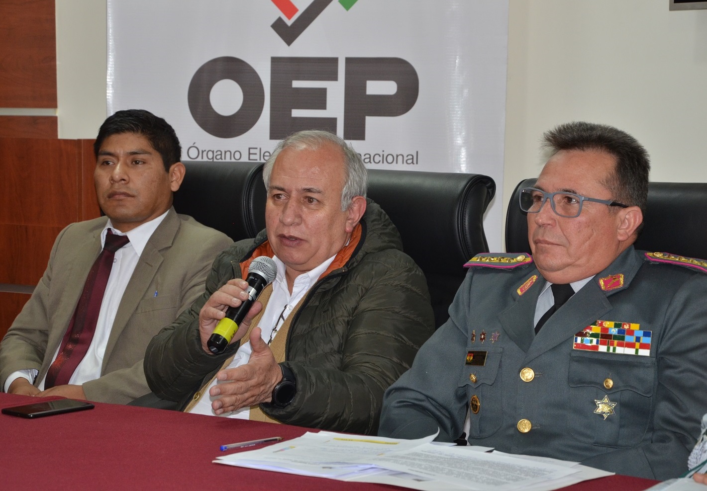 “Hemos venido trabajando hace dos meses con el Tribunal Supremo Electoral y los Tribunales Electorales Departamentales, para coordinar el trabajo que desarrollará las Fuerzas Armadas en este proceso electoral. Quiero indicar a Bolivia que el 71% de los efectivos de las Fuerzas Armadas estarán en las provincias y el 29% en las capitales de los departamentos”, explicó Kaliman.