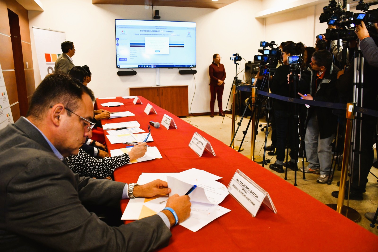 En el caso del Tribunal Departamental Electoral (TED) de La Paz, el sorteo fue conducido por el TSE debido que la Asamblea Legislativa Plurinacional aún no designó a las nuevas autoridades departamentales, por lo que el ente electoral nacional asumió temporalmente su administración, conforme a la normativa vigente.