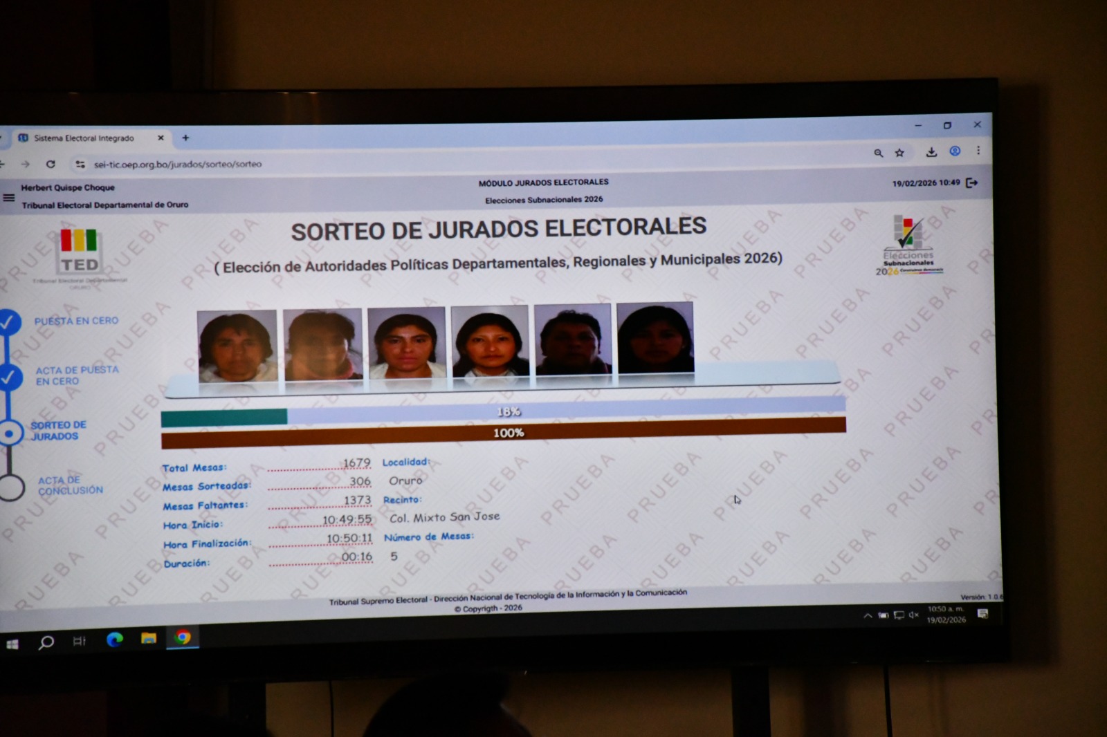 Este viernes 20 de febrero, los Tribunales Electorales Departamentales (TED) llevaron a cabo el sorteo público y simultáneo para la selección de 200.634 juradas y jurados electorales que estarán a cargo de la organización y funcionamiento de 33.439 mesas de sufragio en todo el territorio nacional durante los comicios del 22 de marzo.