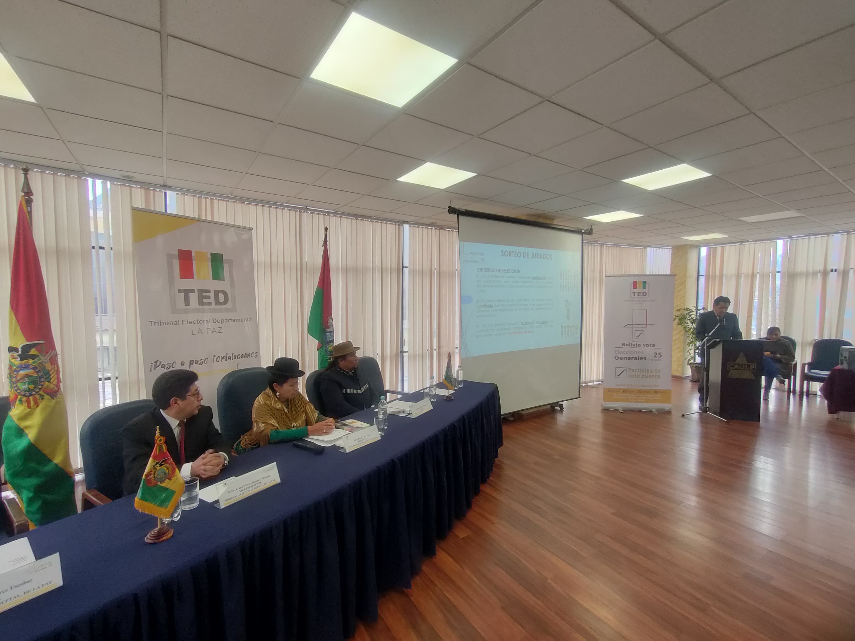 El Tribunal Electoral Departamental de La Paz (TED La Paz) sorteó este viernes 18 de julio a 54.594 ciudadanas y ciudadanos del departamento que ejercerán como jurados de mesas de sufragio en las Elecciones Generales del próximo domingo 17 de agosto. El acto público se realizó a las 10:00 en el Colegio de Auditores, en cumplimiento de la actividad 49 del calendario electoral.
