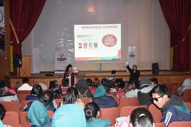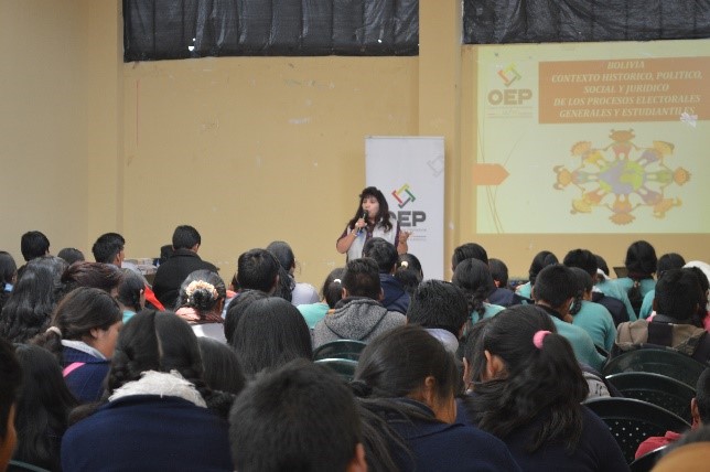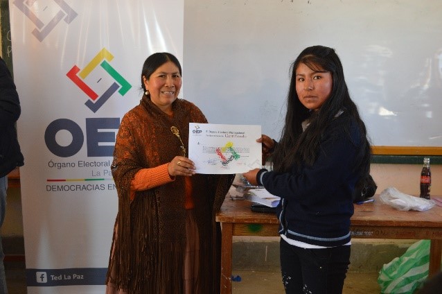 El Tribunal Electoral Departamental (TED) de La Paz realizó una serie de capacitaciones sobre democracia intercultural y paritaria, con más de mil estudiantes del nivel secundario de 19 unidades educativas de los municipios de Patacamaya, Pucarani, Waldo Ballivián, Corocoro, Caranavi y Coroico.