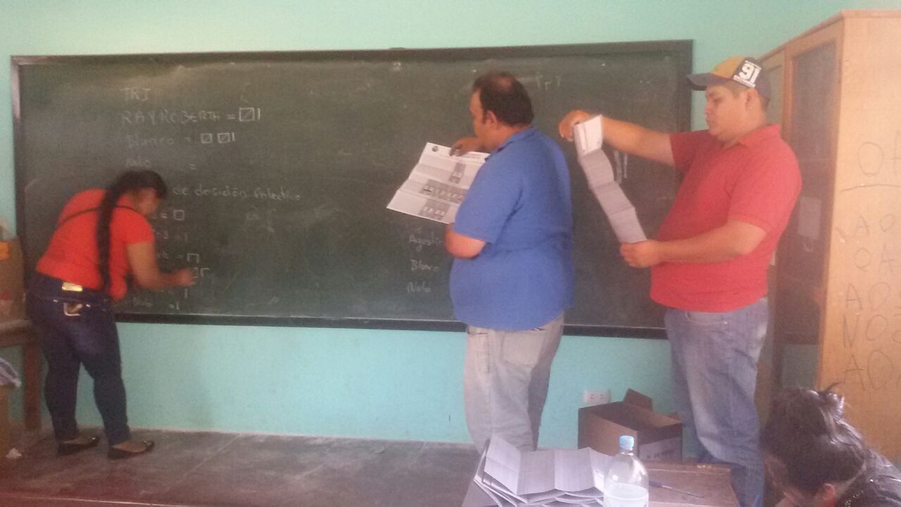 Las y los jurados de mesa muestran las papeletas de sufragio.