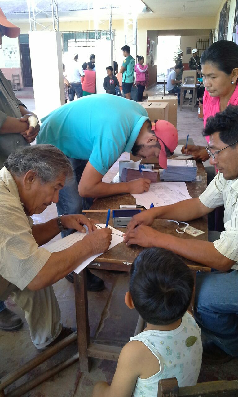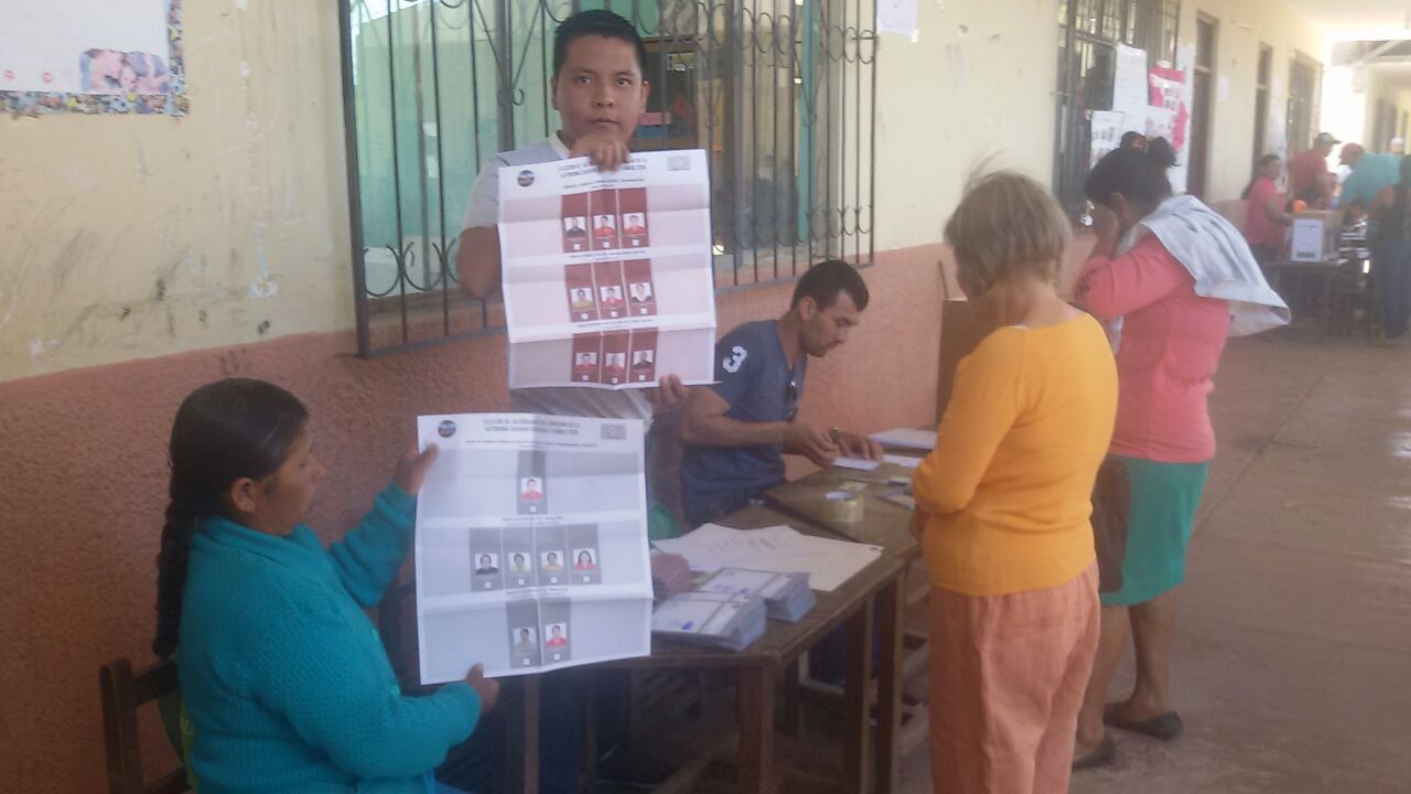 Las y los jurados de mesa entregaron dos papeletas a cada elector y electora para que marquen en la casilla – de entre 16 candidatos – a quienes sean de su preferencia.