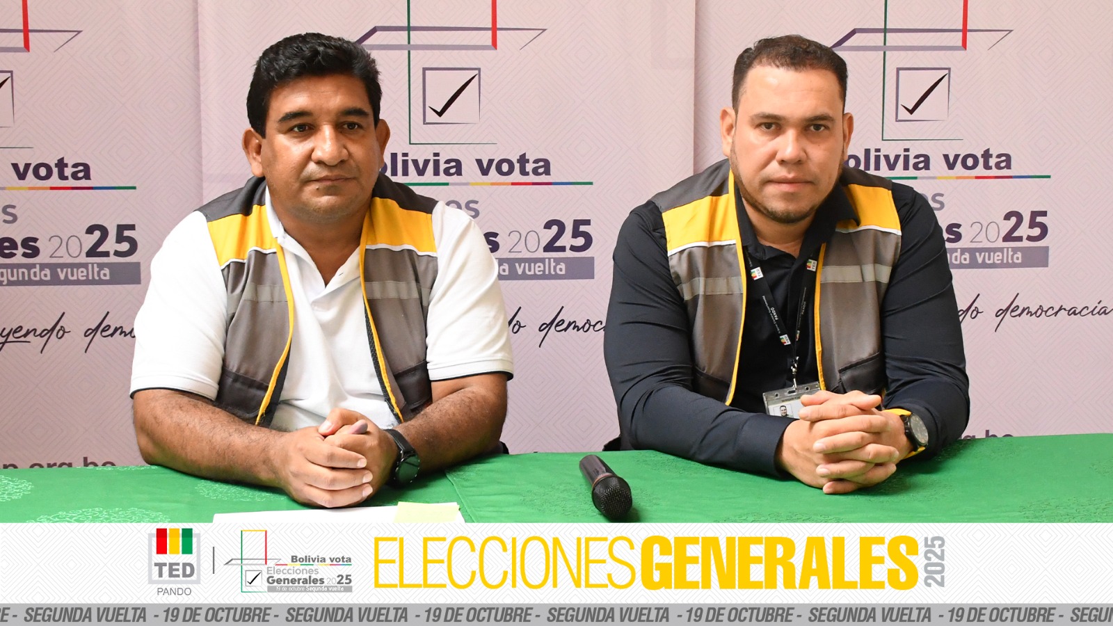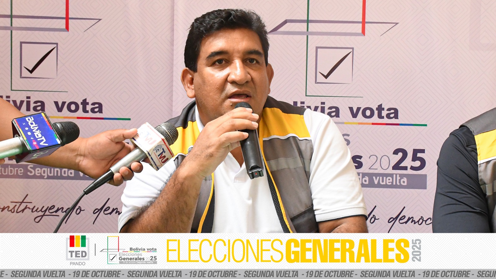 En conferencia de prensa, el presidente del Tribunal Electoral Departamental (TED) de Pando, Levi Salez Roca, y el vocal José Antonio Oliveira informaron que la jornada electoral de la segunda vuelta de las Elecciones Generales 2025 se desarrolla con normalidad y alta participación ciudadana en todo el departamento.