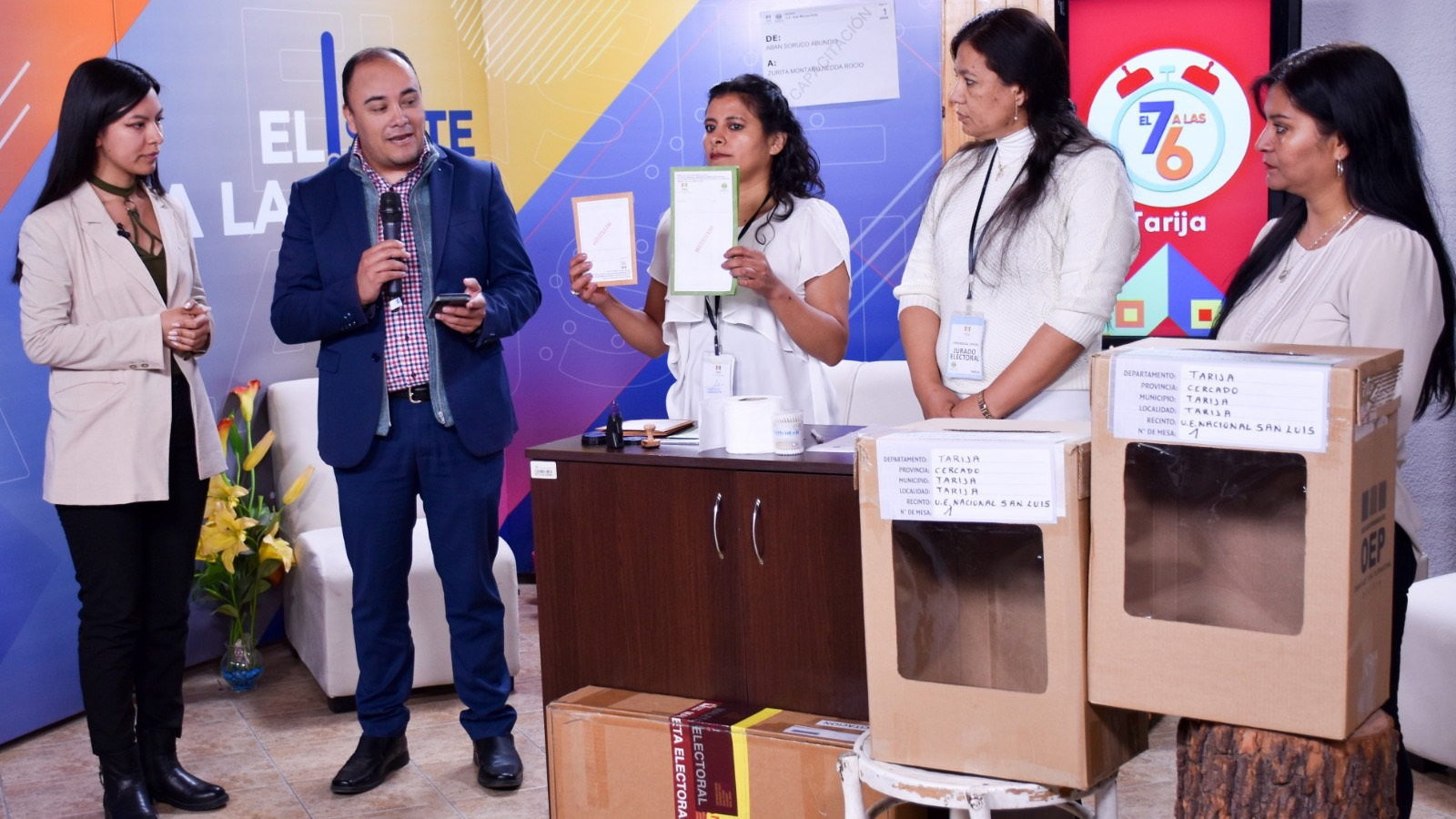 El Tribunal Electoral Departamental (TED) de Tarija, a través del Servicio Intercultural de Fortalecimiento Democrático (Sifde), visita medios de comunicación para explicar, mediante simulacros, cómo votar en la Elección de Consejeras y Consejeros de la Cooperativa de Servicios Públicos de Agua Potable y Alcantarillado Sanitario Tarija (Cosaalt RL) este domingo 13 de agosto. Vea el simulacro de votación en este enlace: https://fb.watch/mjALNX89Qt/?mibextid=Nif5oz