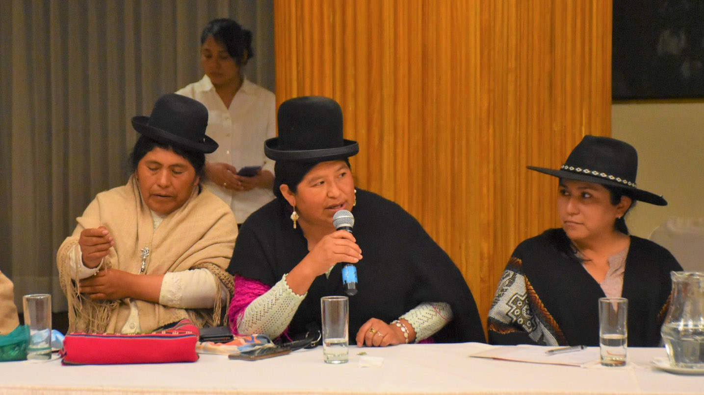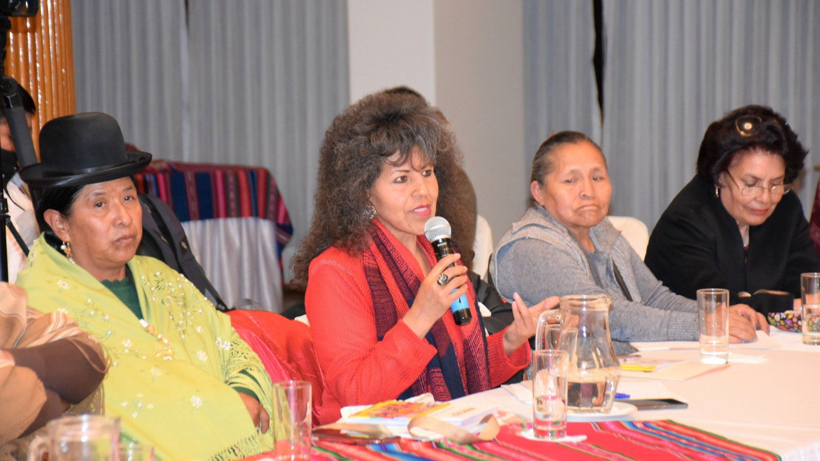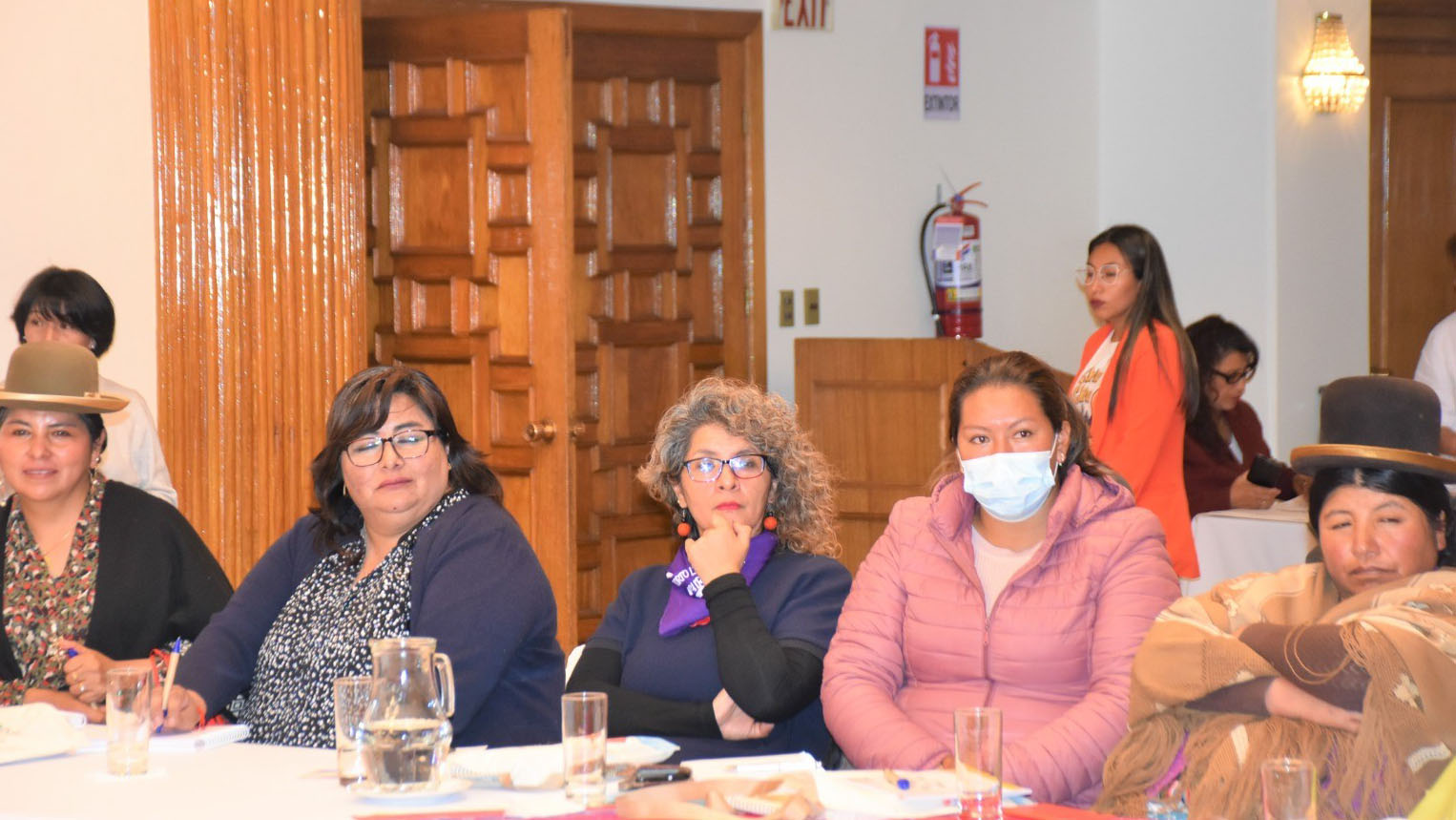 Mujeres lideresas, exdirigentes, autoridades electas y representantes de las Naciones y Pueblos Indígena Originario Campesinos (NPIOC), junto a las vocales del Tribunal Supremo Electoral (TSE) Nelly Arista y Dina Chuquimia, consideraron que para avanzar en el ejercicio pleno de los derechos políticos de las mujeres es necesario informarse y formarse en temas normativos, además de descolonizar y despatriarcalizar la participación femenina, unirse e incidir en políticas preventivas desde las escuelas.