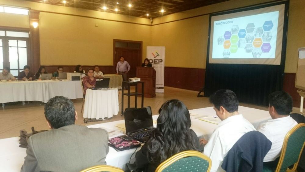 La reunión se realiza en el hotel Diplomat donde las y los vocales de todo el OEP trabajan en la armonización de todo el proceso de organización electoral.