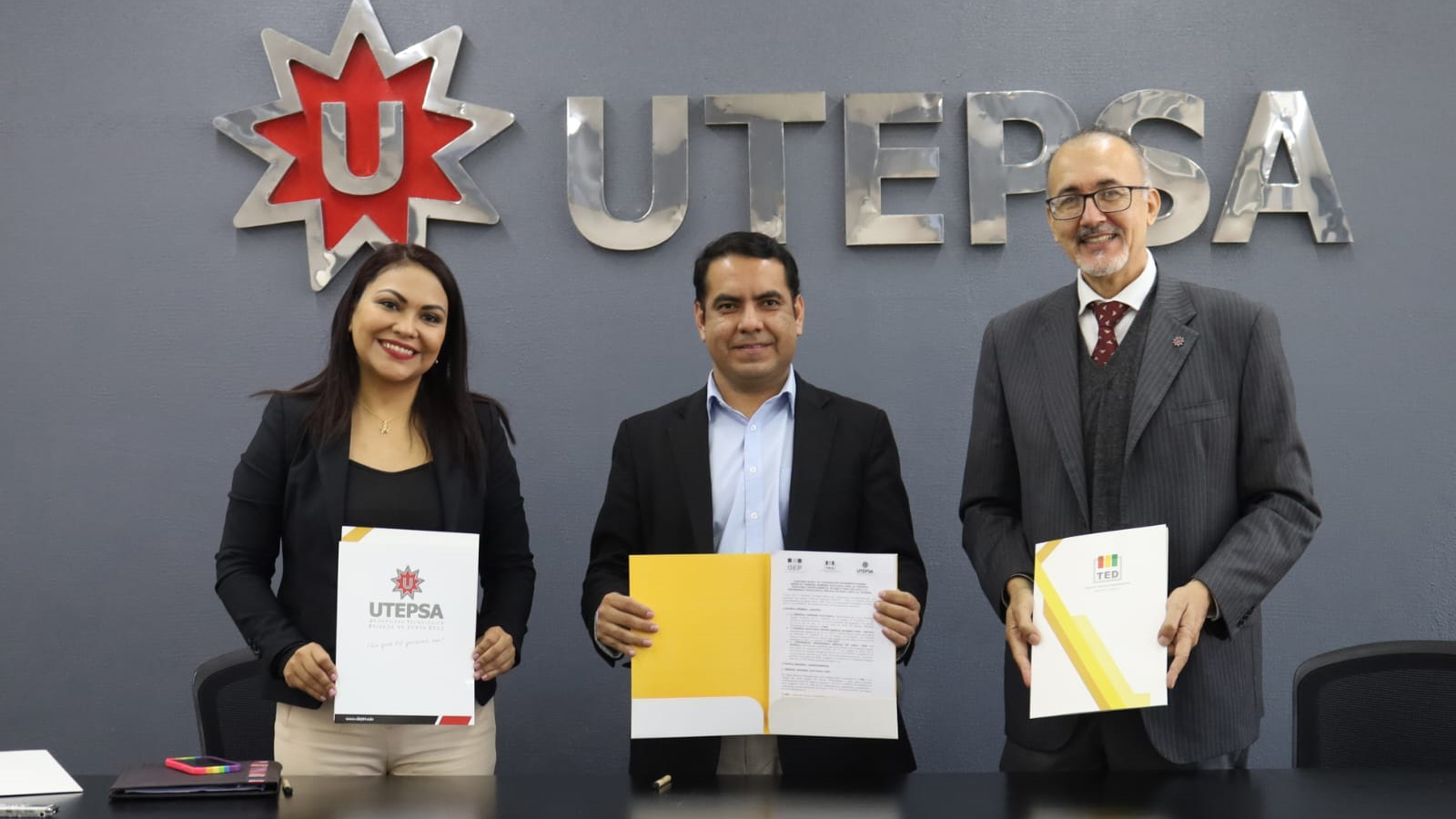 El convenio fue suscrito por el presidente en ejercicio del TSE, Francisco Vargas, la presidenta del TED Santa Cruz, María Cristina Claros, y el rector de la Utepsa, Rubén Darío Dabdoub.