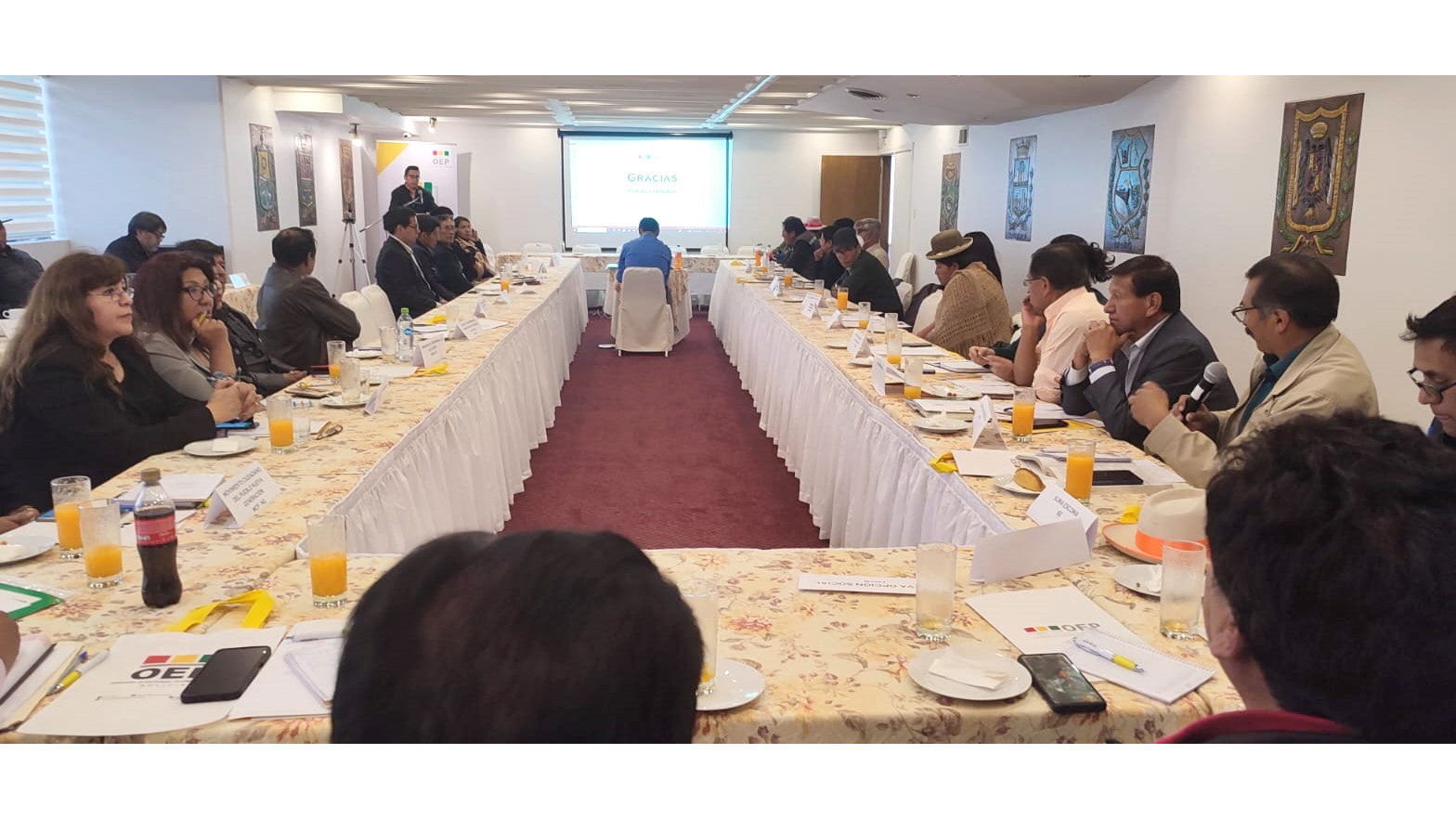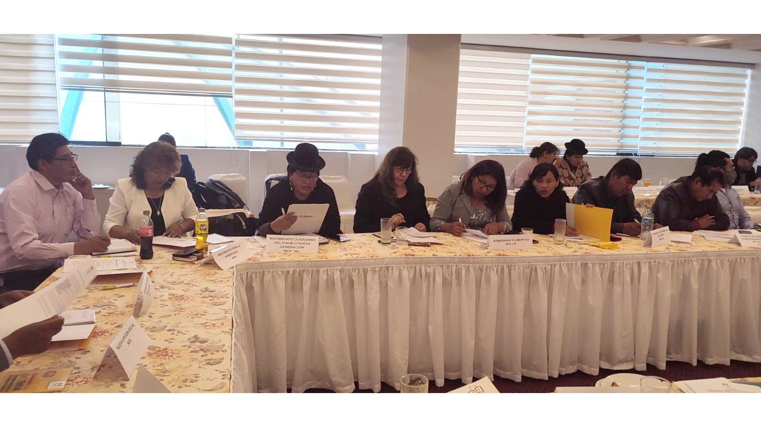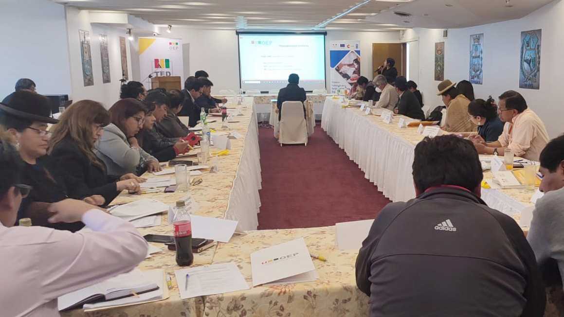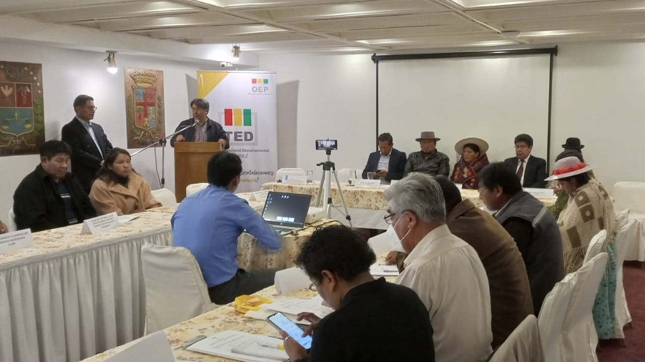 Representantes de organizaciones políticas y de las Naciones y Pueblos Indígena Originario Campesinos (NPIOC) de La Paz participaron en la mesa multipartidaria que organizó el Tribunal Electoral Departamental (TED) como parte del fortalecimiento público en año no electoral, que se desarrolló este viernes 29 de septiembre en ambientes del hotel Presidente.