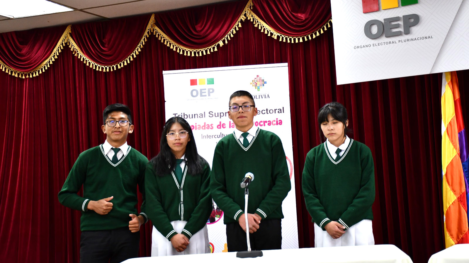 Este miércoles 13 de septiembre fue el turno de la participación de las unidades educativas de las provincias. La primera en conseguir el pase a la final fue la unidad educativa Guillermo Gutiérrez Vea Murguía, de Avicaya, con los estudiantes Eldy Belén Michaga Peñafiel, Nicol Elsa Juruquita Calluni, Eric Adrian Atanacio Ramos, Cristiano Ronaldo Magne Ventura.