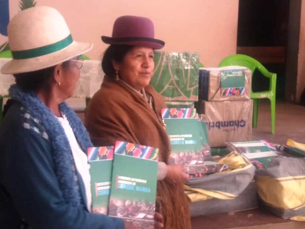 “Las autoridades de Corque Marka quedamos agradecidas por la cooperación que nos presta a este proceso de la autonomía indígena originaria; estos documentos serán analizados conjuntamente a nuestras autoridades”, aseveró el Mallku del Consejo, Eduardo López Perez.