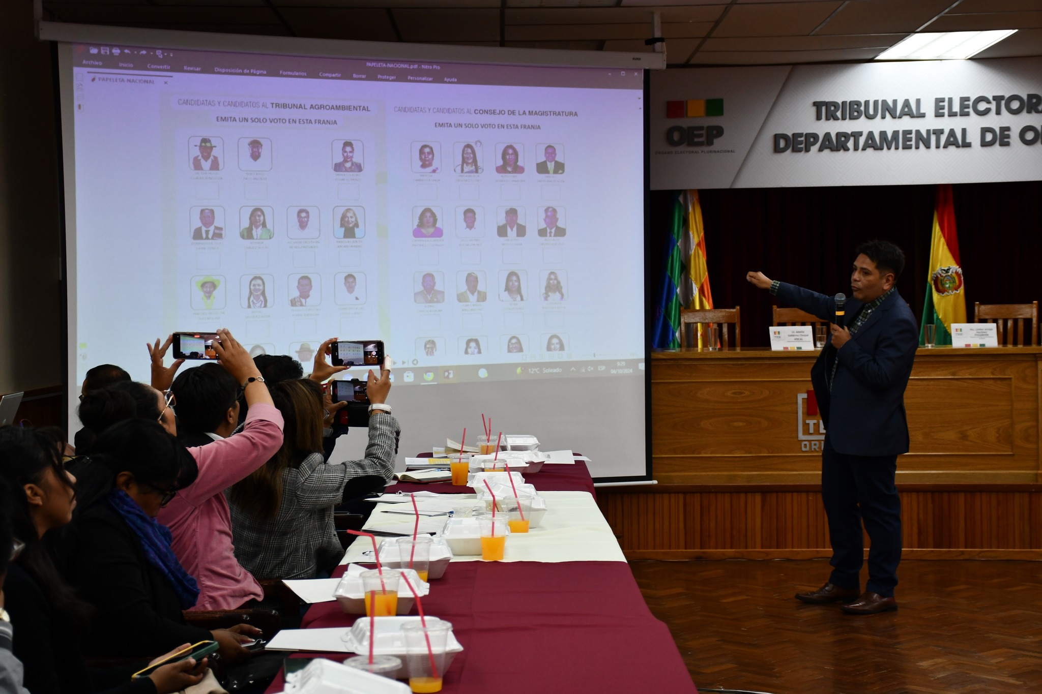 Periodistas de Oruro participaron en el taller informativo sobre sistema electoral y reglamentación de las elecciones judiciales 2024, con la asistencia de la vocal del Tribunal Supremo Electoral (TSE) Nancy Gutiérrez y autoridades del Tribunal Electoral Departamental (TED) de Oruro, este taller fue desarrollado el pasado viernes 4 de octubre en el auditorio del Tribunal Electoral Departamental de Oruro.