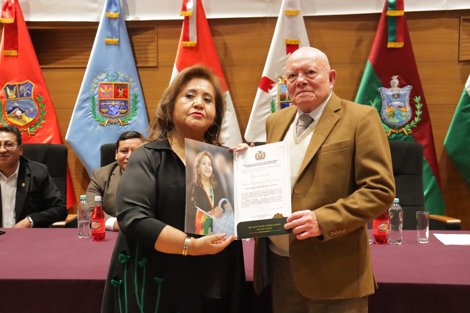En un acto solemne, celebrado en la Asamblea Legislativa Plurinacional, el presidente del Tribunal Supremo Electoral (TSE), Óscar Hassenteufel, fue distinguido este jueves con el galardón Illimani Majestuoso del Bicentenario, otorgado por la Comisión de Derechos Humanos de la Cámara de Diputados, en reconocimiento a su destacada trayectoria, su liderazgo y su compromiso con la democracia.