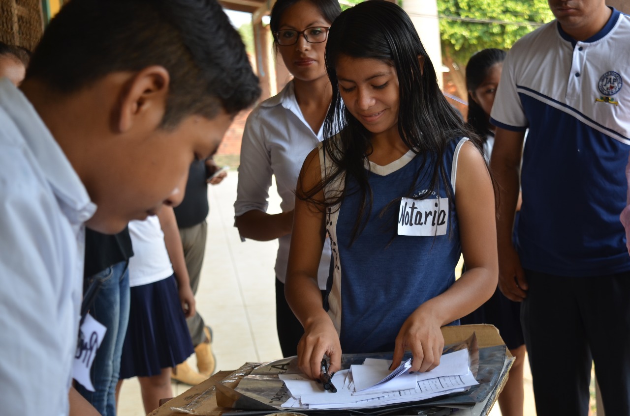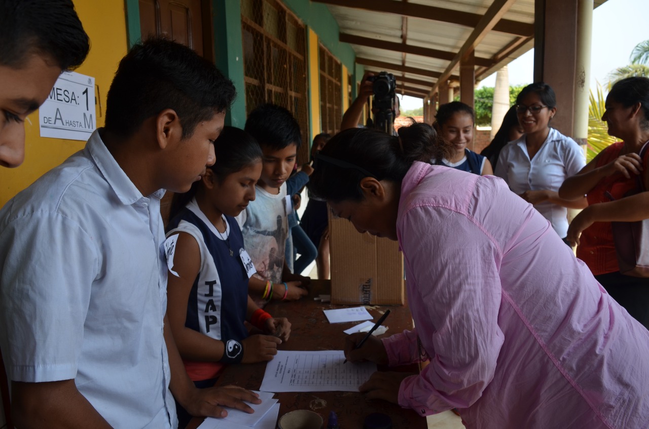 Durante la socialización los niños y niñas invitaron a las autoridades electorales a participar del simulacro de votación organizado por ellos mismos con la ayuda de la practicante, donde mostraron el antes, durante y después de la votación de una mesa de sufragio, y la importancia del valor de la responsabilidad, con la que se debe llevar adelante una elección.
