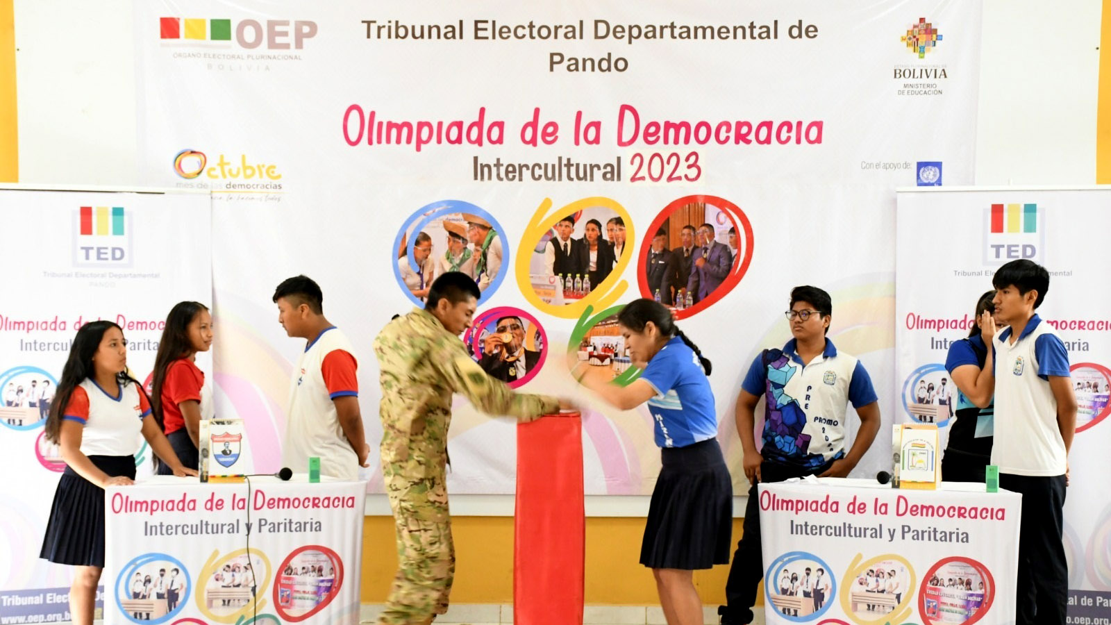 Es importante recordar que el TED Pando organiza las Olimpiadas de la Democracia Intercultural desde el año 2018, por quinta vez consecutiva en la región, hecho que posteriormente fue referente para que Sala Plena del Tribunal Supremo Electoral (TSE) defina como política institucional este espacio de interacción con los estudiantes, permitiendo así que se replique en los nueve departamentos de Bolivia a partir de la gestión 2021.