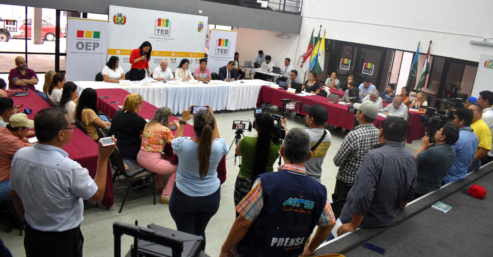 El evento contó con la participación de autoridades del Tribunal Supremo Electoral (TSE), entre ellas el presidente Óscar Hassenteufel y la vocal Yajaira San Martín, así como representantes del Tribunal Electoral Departamental (TED) de Santa Cruz: María Cristina Claros, presidenta; José Miguel Callejas, vicepresidente; y los vocales Judith Sánchez y Saúl Paniagua. La inauguración estuvo a cargo de la Presidenta del TED Santa Cruz, quien destacó la importancia de estos espacios para fortalecer el derecho de la ciudadanía a acceder a información veraz y oportuna durante el proceso electoral.