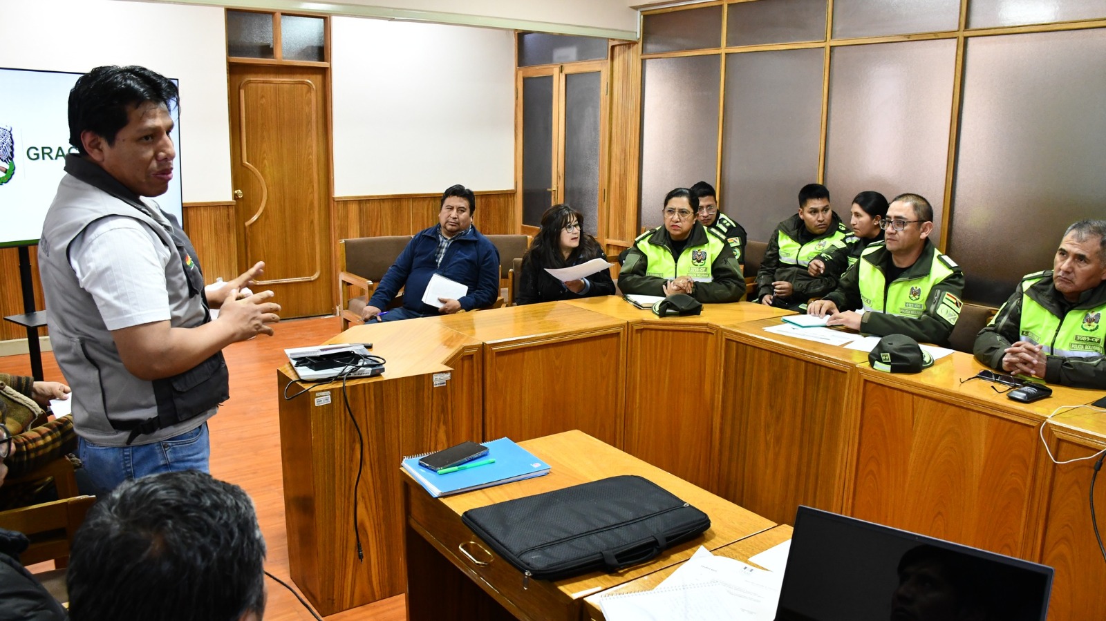 “Destacamos la voluntad de las autoridades para trabajar de manera coordinada en el monitoreo, la seguridad y el apoyo al personal del TED Oruro”, señaló el Cnl. Vega.