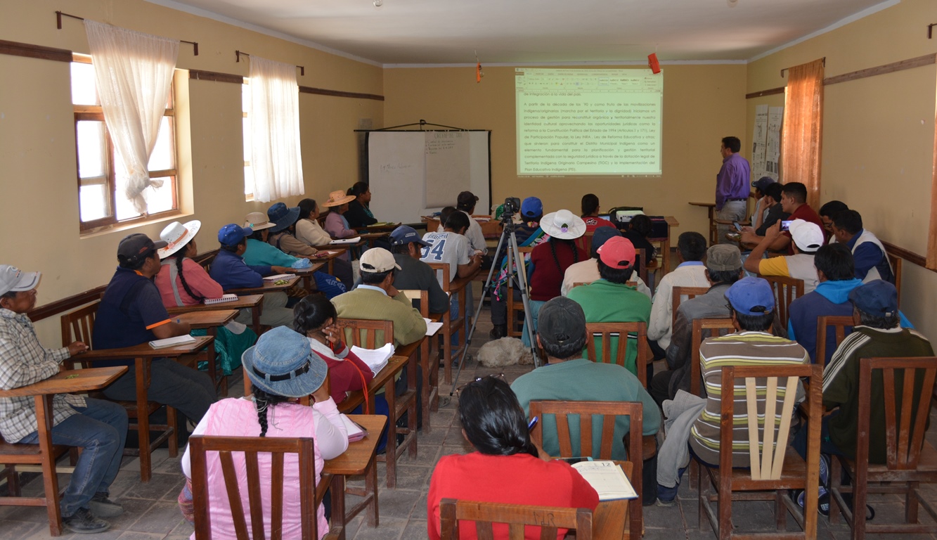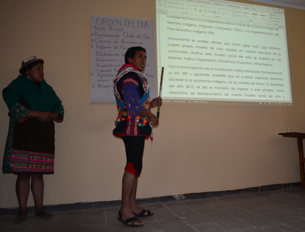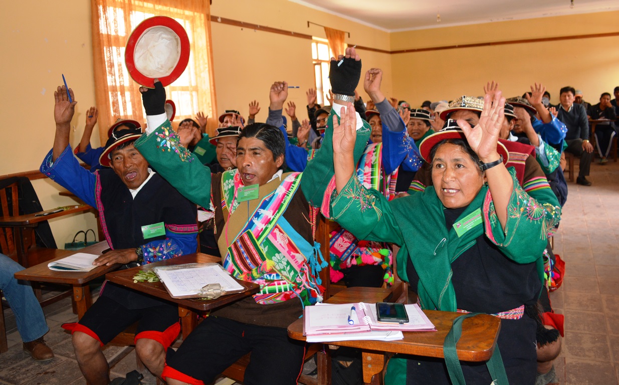 “Hemos ‘bajado’ a las bases [socializando] todo lo que habíamos consensuado en los talleres (de trabajo), donde hemos trabajado por ayllus. Para los debates trabajamos en la plenaria, sacamos conclusiones y nos comprometimos a bajar a las bases. Después de un largo tiempo comenzamos a socializar en las comunidades, por grupos de forma intercalada; por ejemplo, el ayllu Qullana iba al ayllu Wisijsa intercambiando ideas. Con el estatuto en borrador hemos ‘bajado’ a las comunidades y hemos hecho entender qué es la autonomía”, informó Quiroga.