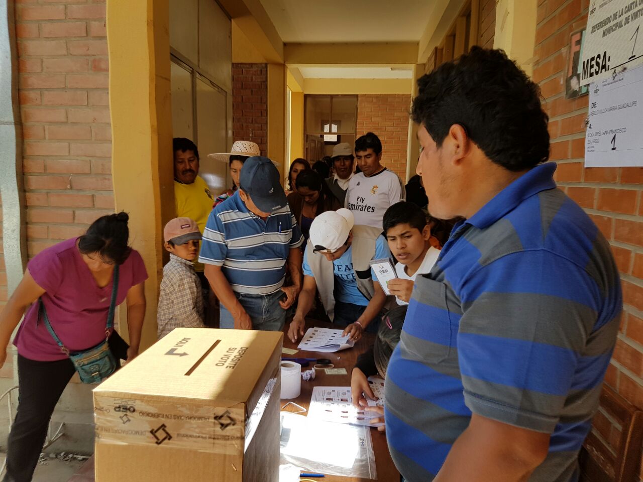 La jornada electoral en Vinto, Arque, Totora y Raqaypampa del departamento de Cochabamba transcurrió sin contratiempos y con una importante participación ciudadana. El vocal del TSE José Luis Exeni, que acompaña el proceso en Cochabamba, informó que el 100% de mesas electorales se abrieron sin contratiempos y se percibió una importante participación ciudadana.
