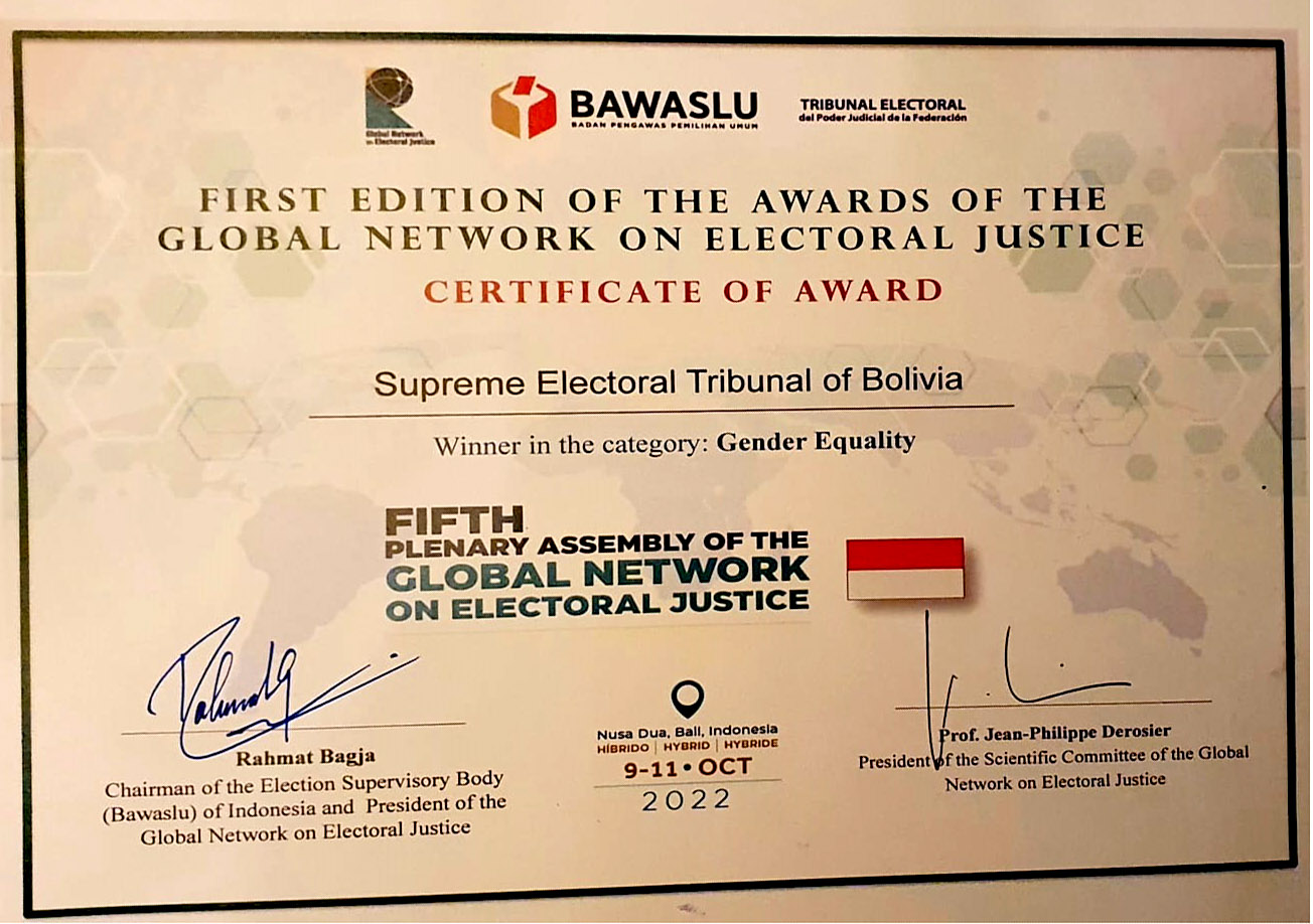 HomeQuinta Asamblea Plenaria de la Red Mundial de Justicia Electoral premia al TSE por su trabajo en igualdad de género TSE_PREMIO_RMJE_INDONESIA_CERT