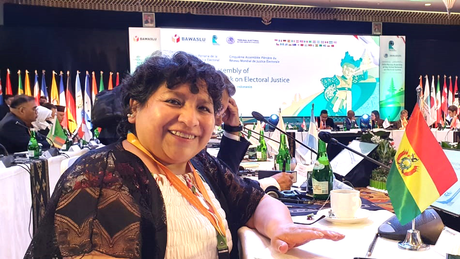 HomeQuinta Asamblea Plenaria de la Red Mundial de Justicia Electoral premia al TSE por su trabajo en igualdad de género Vocal_Chuquimia_RMJE_01