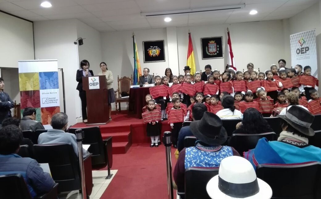 El taller, organizado por el Tribunal Supremo Electoral (TSE), el Tribunal Electoral Departamental (TED) de Chuquisaca y la Fundación Konrad Adhenauer (KAS), contó con la participación de más de 100 representantes de las naciones y pueblos indígenas del departamento de Chuquisaca, quienes, además, recibieron los ejemplares de la Constitución Política del Estado traducidos a los idiomas aymara, quechua y guaraní.