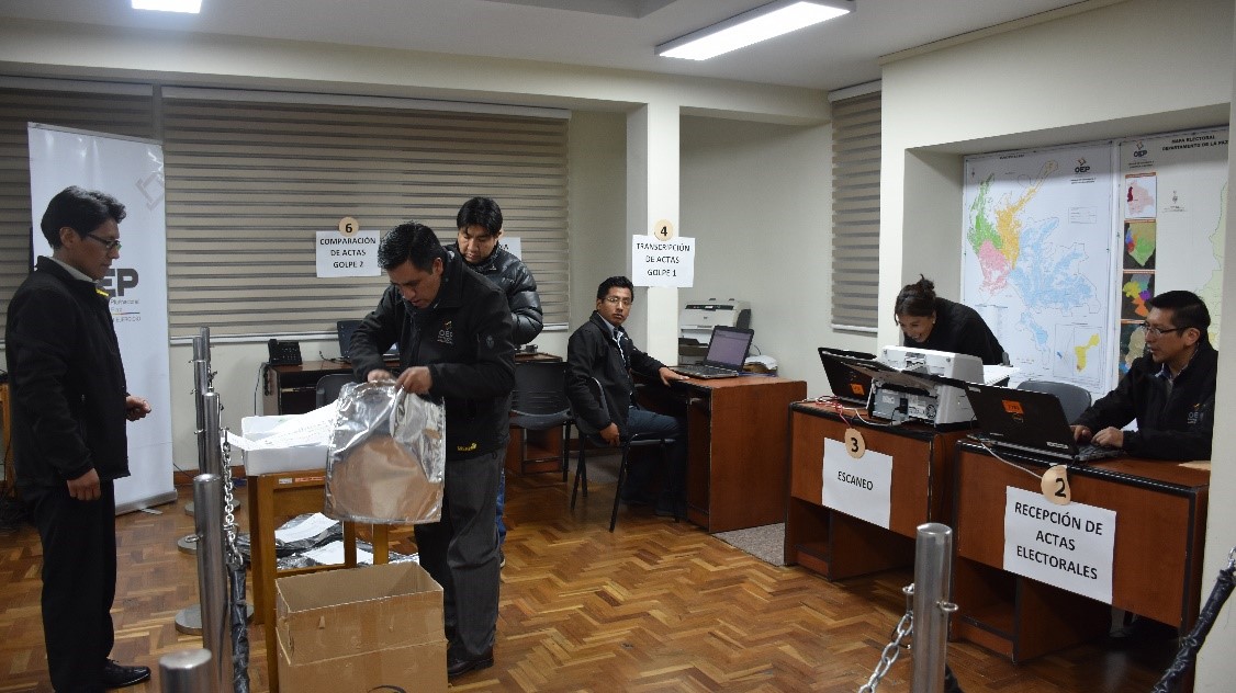 La Sala Plena del TED La Paz concluyó el cómputo oficial de las 62 actas electorales que llegaron de similar número de mesas de sufragio desde Palos Blancos que este domingo participó en el Referendo Autonómico.