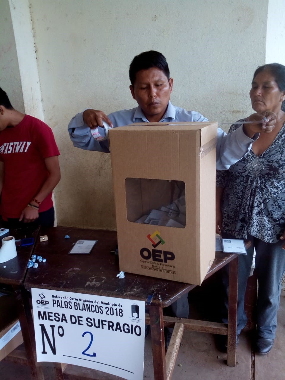 Condori agradeció a la población de Palos Blancos por su participación y calificó a la jornada de exitosa por la tranquilidad que se vivió, lo cual también permitió tener los resultados oficiales de la consulta en menos de 24 horas.