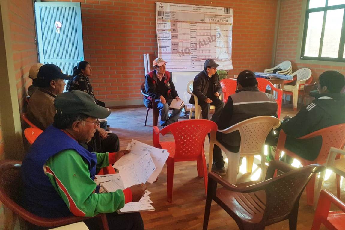 Según Gonzales, el jueves 16 de mayo el equipo técnico del TEDO capacitará a las y los jurados de mesa de la comunidad de Ucumasi, y por la tarde a los de la localidad de San Martín, adonde también acudirán jurados electorales de las comunidades de Concepción Belén y Challacota.