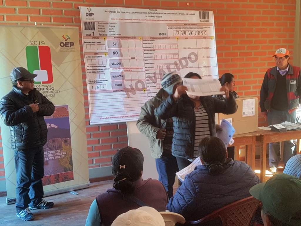 Salinas de Garci Mendoza decidirá este 26 de mayo sobre la aprobación y puesta en vigencia de su proyecto de Estatuto Autonómico Indígena. Para ello, el TED Oruro sorteó a 144 jurados, de los cuales 72 son varones y 72 mujeres.