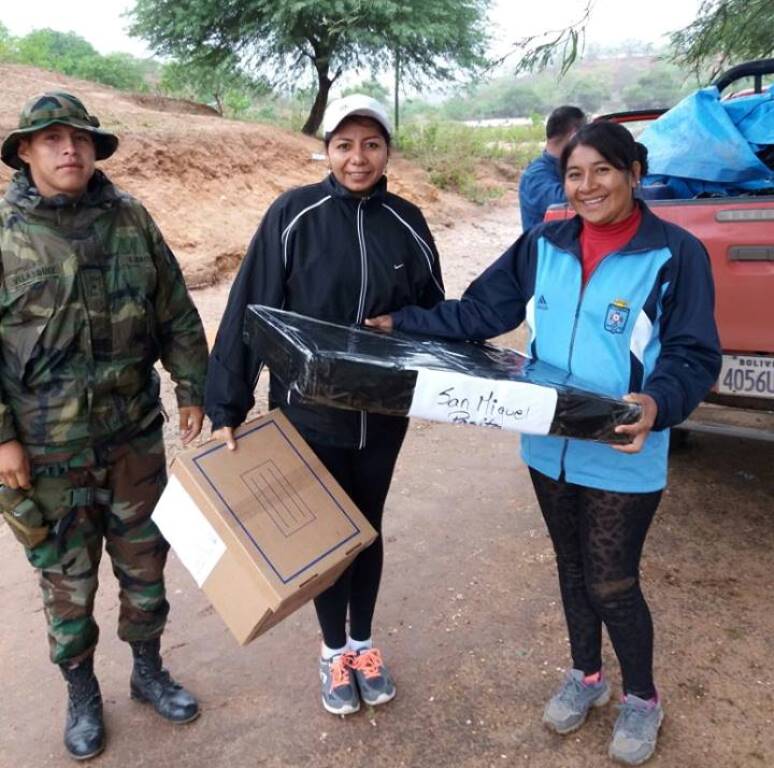 La mañana de este jueves 17 de noviembre, a partir de las 9:00, 10 brigadas del TED salieron llevando los kit electorales que contienen los materiales y útiles necesarios para la consulta. Por la tarde ya se reportaron las primeras entregas a los y las notarios de los recintos más cercanos de los municipios de Buena Vista, El Torno y Gutiérrez. La entrega finalizará este sábado con los recintos más lejanos o de difícil acceso.