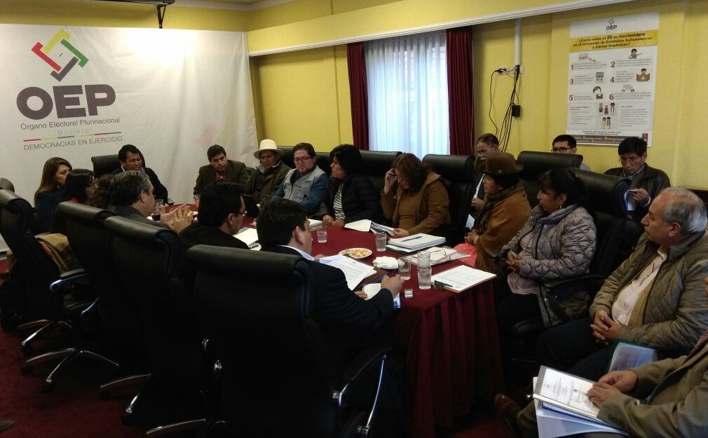 La Sala Plena del Tribunal Supremo Electoral (TSE), junto a representantes del Tribunal Constitucional Plurinacional (TCP), el Viceministerio de Autonomías, la Coordinadora Nacional de Autonomías Indígenas Originario Campesinas (CONAIOC), la Federación de Asociaciones Municipales (FAM) de Bolivia y la Asociación de Concejalas de Bolivia (ACOBOL) acordaron realizar siete talleres informativos este 26 de febrero, con miras al Referendo Autonómico previsto para este año.