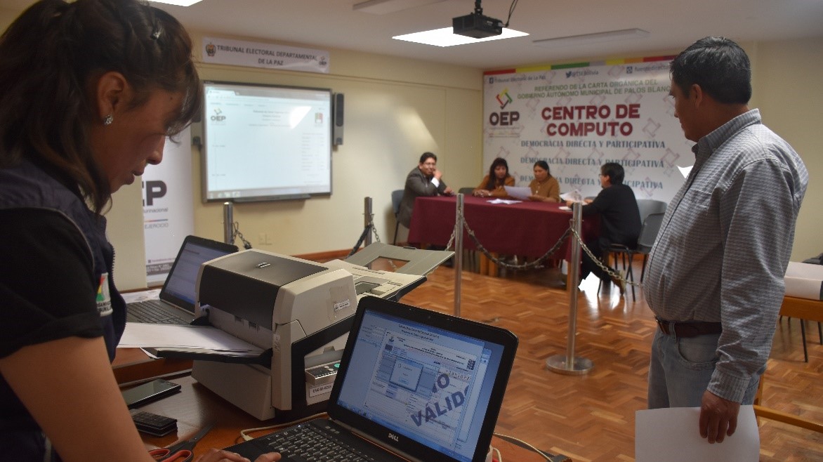 El Tribunal Electoral Departamental (TED) de La Paz realizó este viernes el simulacro de lo que será el cómputo oficial de las actas electorales que se recibirá la Sala Plena, desde el municipio de Palos Blancos, donde este domingo la ciudadanía decidirá sobre la vigencia o no del proyecto de Carta Orgánica Municipal.