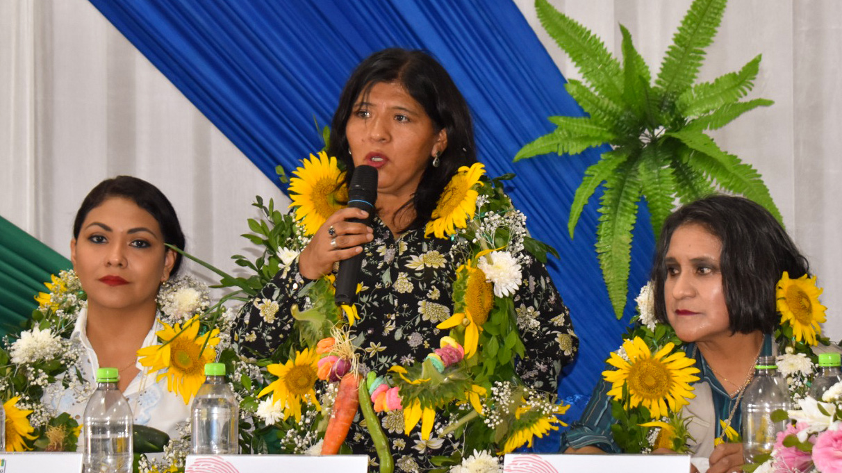 Autoridades del TSE, Nelly Arista, Nancy Gutierrez, Tahuichi Tahuichi Quispe inauguran la dirección regional del Serecí en el municipio cruceño de San Julián.