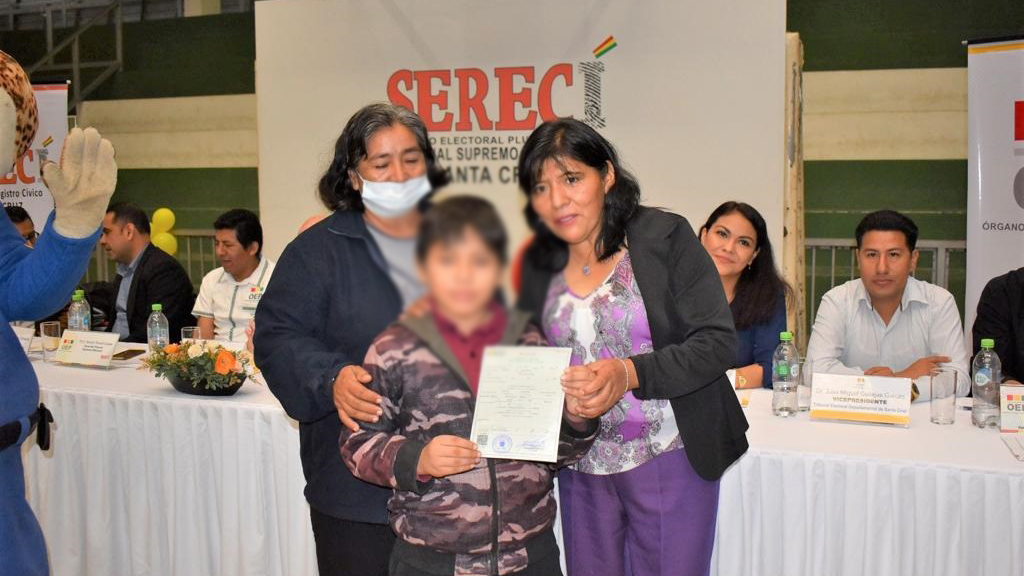 Asimismo, la presidenta del Tribunal Departamental Electoral (TED) de Santa Cruz, María Cristina Claros, indicó que con la obtención del certificado de nacimiento se puede ejercer otros derechos como el acceso a la salud, fundamental para el desarrollo de la niñez y adolescencia.