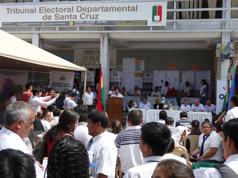 El jurado calificador - conformado por la Sala Plena del TED Santa Cruz, la Asamblea Permanente de Derechos Humanos, representada por María Inés Galvis; el Defensor del Pueblo en Santa Cruz, con Jorge Paz; el Servicio de Registro Cívico (SERECI), a través de su directora Olga Lidia Espinoza- otorgó el tercer lugar al colegio Monte Carmelo Cavanis, mientras que el segundo lo ocupó la unidad educativa Santa Cruz de la Sierra de Fe y Alegría Turno Tarde; y se coronó como ganadora la Unidad Santa Cruz “Fe y Alegría” Turno Mañana.