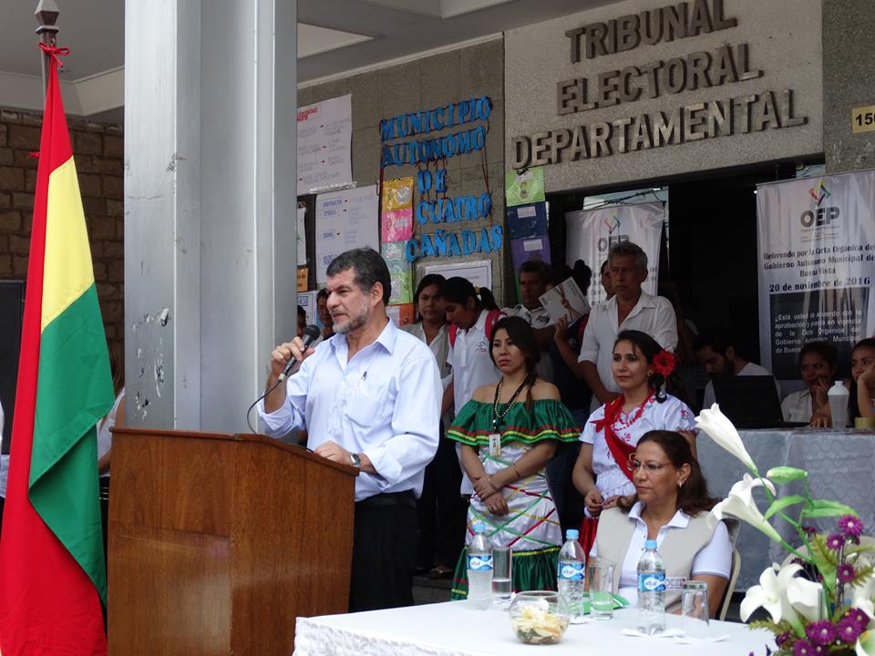 La actividad inició a las 9:40 de la mañana y fue inaugurada por el Presidente del Tribunal Electoral Departamental (TED) de Santa Cruz, Eulogio Núñez, quien resaltó que el ejercicio democrático se manifiesta también en el respeto y el ejercicio de la interculturalidad.