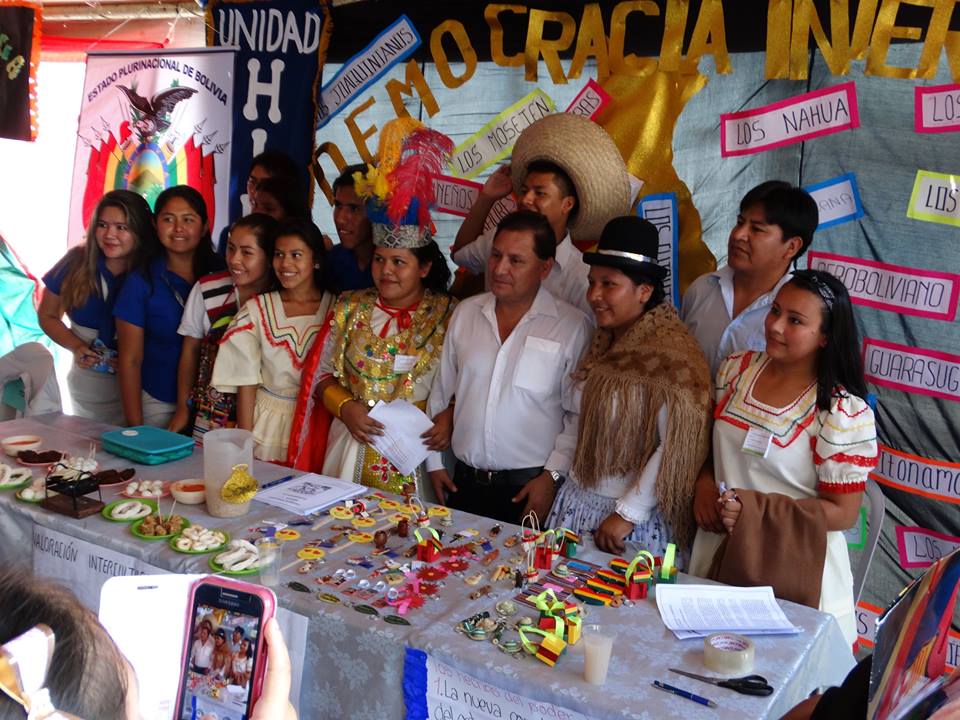 Las y los estudiantes, junto a sus maestras y maestros, asumieron el reto de participar de esta feria con exposiciones educativas sobre la Democracia Intercultural. La investigación sobre los temas fue notable cuando las y los jóvenes explicaron los conceptos, valores e historia de la Democracia Intercultural de Bolivia.