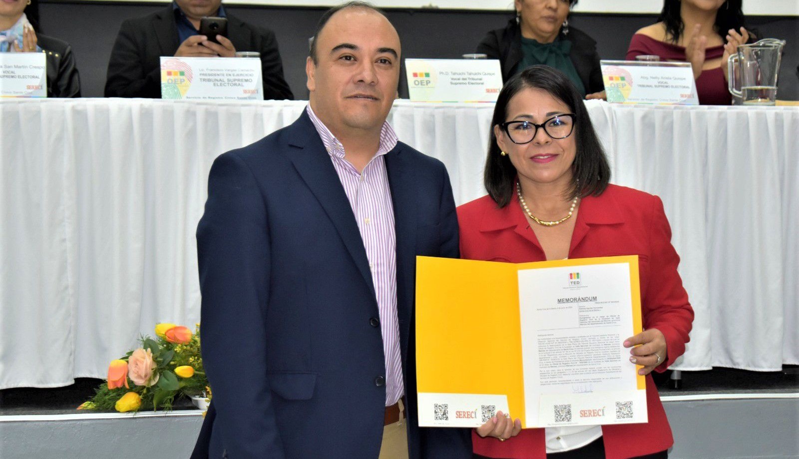 En principio, el presidente interino del TSE, Francisco Vargas, precisó la labor institucional del Serecí: “El Serecí registra los hechos vitales más importantes en la vida civil de los bolivianos y las bolivianas, registra el nacimiento, el matrimonio y la defunción de las personas, además de atender una serie de trámites; pero también administra el Padrón Electoral, que es la base de todo proceso electoral, mediante el registro de votantes. Dicho esto, deseo felicitar a las dos nuevas profesionales, que con seguridad tienen la vocación y empatía para brindar un servicio de calidad”.