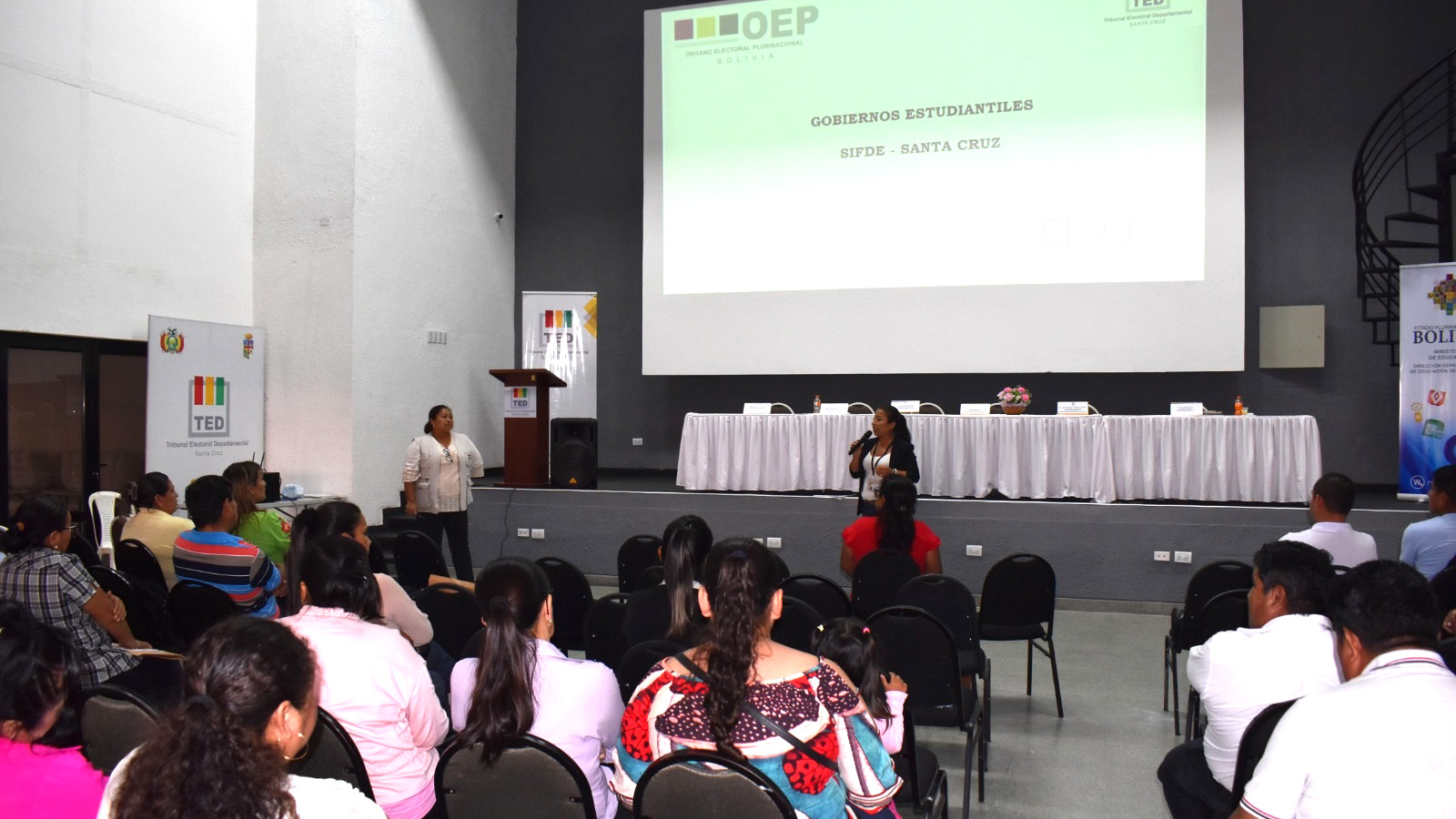 En el marco del 1er. Encuentro Departamental de Participación Social Comunitaria, llevado adelante por el Servicio Intercultural de Fortalecimiento Democrático (Sifde) del Tribunal Electoral Departamental (TED) de Santa Cruz junto a la Dirección Departamental de Educación, se capacitó a directores distritales, técnicos, juntas de padres de familia y estudiantes de la Federación de Estudiantes de Secundaria (FES).