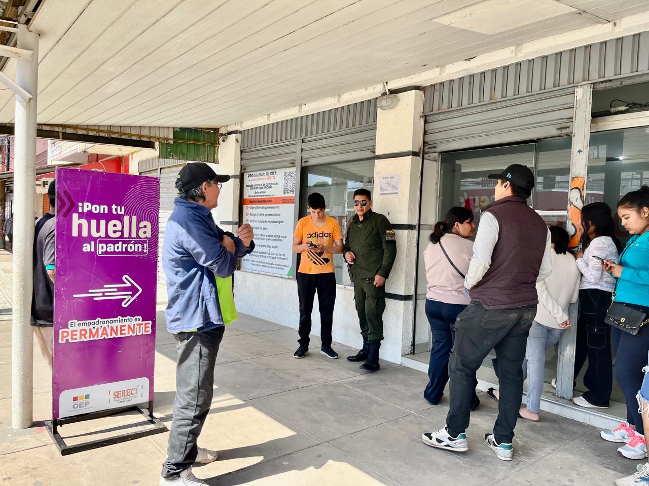 El director departamental del Serecí Santa Cruz, Adolfo Freire, recordó que el empadronamiento permanente es la modalidad de inscripción en el Padrón Electoral Biométrico de ciudadanas y ciudadanos que hayan cumplido 18 años y de quienes deseen actualizar sus datos.