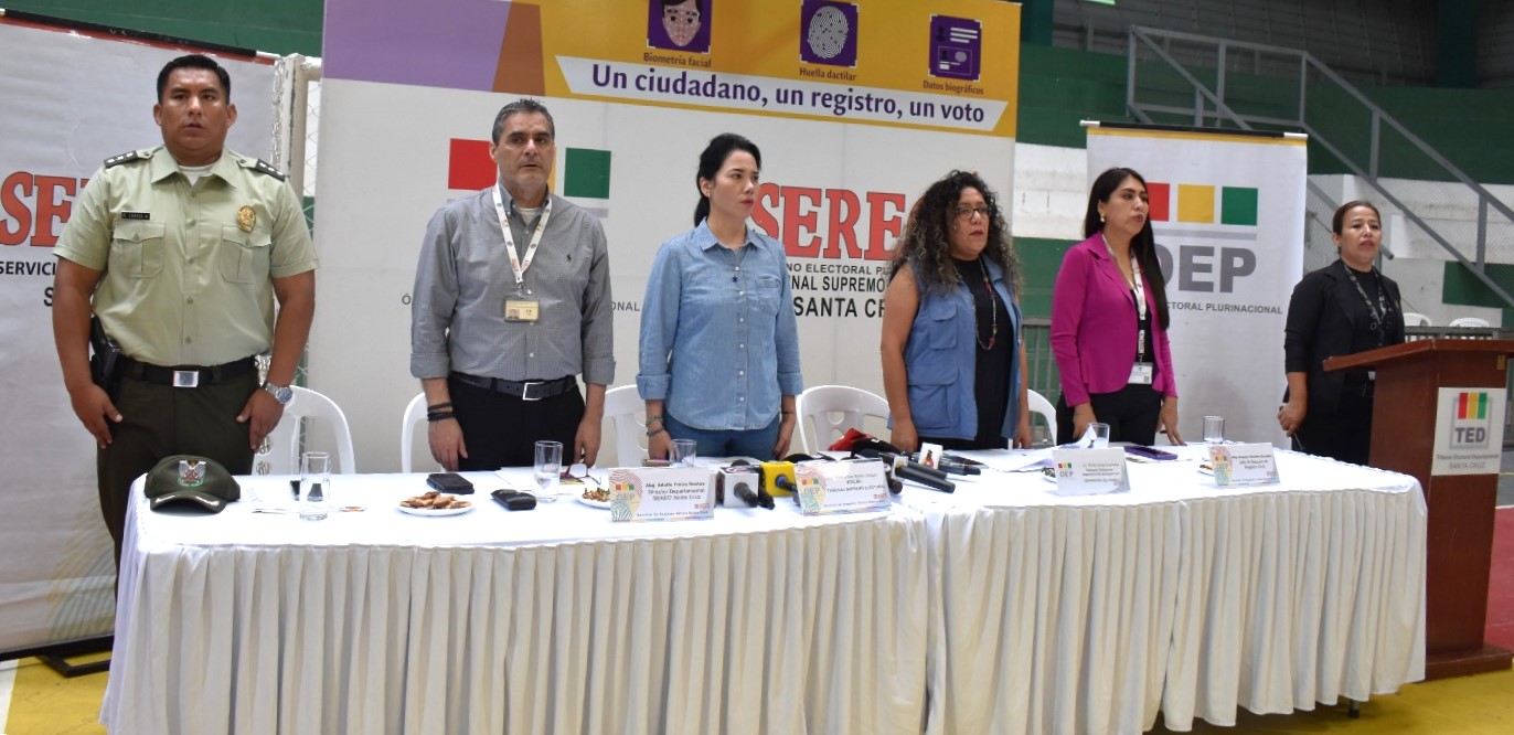 Por su parte, Adolfo Freire, director departamental del Serecí, informó que el despliegue logístico, de personal y estaciones biométricas, en 10 megacentros de la capital cruceña, así como la atención en los puntos fijos de los 53 municipio y las dos AIOC, en horarios diferenciados y extraordinarios, permitirá la cobertura del servicio de empadronamiento en los 572 asientos electorales del departamento de Santa Cruz.