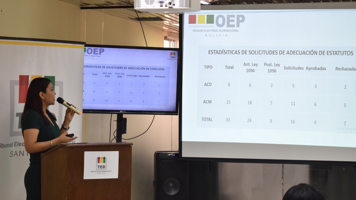 En tanto que la presidenta del TED Santa Cruz, María Cristina Claros Castro, informó la ejecución de todas las actividades planificadas por las diferentes áreas en la gestión 2022, con un 76,80 por ciento de cumplimiento y ejecución presupuestaria del Programa Operativo Anual (POA).