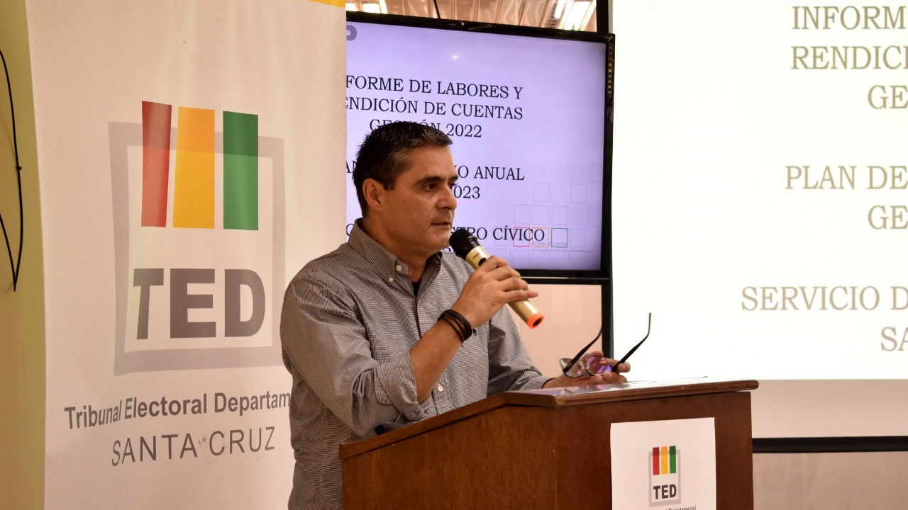Vocal del TSE, Francisco Vargas en el Informe de Labores y Rendición de Cuentas 2022 del TED Santa Cruz.