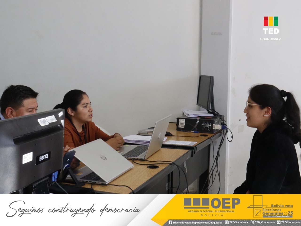 Las y los jurados electorales que no podrán ejercer su rol en la segunda vuelta de las Elecciones Generales 2025, que se realizará el 19 de octubre, deben presentar sus excusas del 22 al 28 de septiembre. Pueden hacerlo de forma virtual a través de la plataforma https://plataforma-ciudadana.oep.org.bo y de manera presencial en las oficinas del Tribunal Electoral Departamental de Chuquisaca.