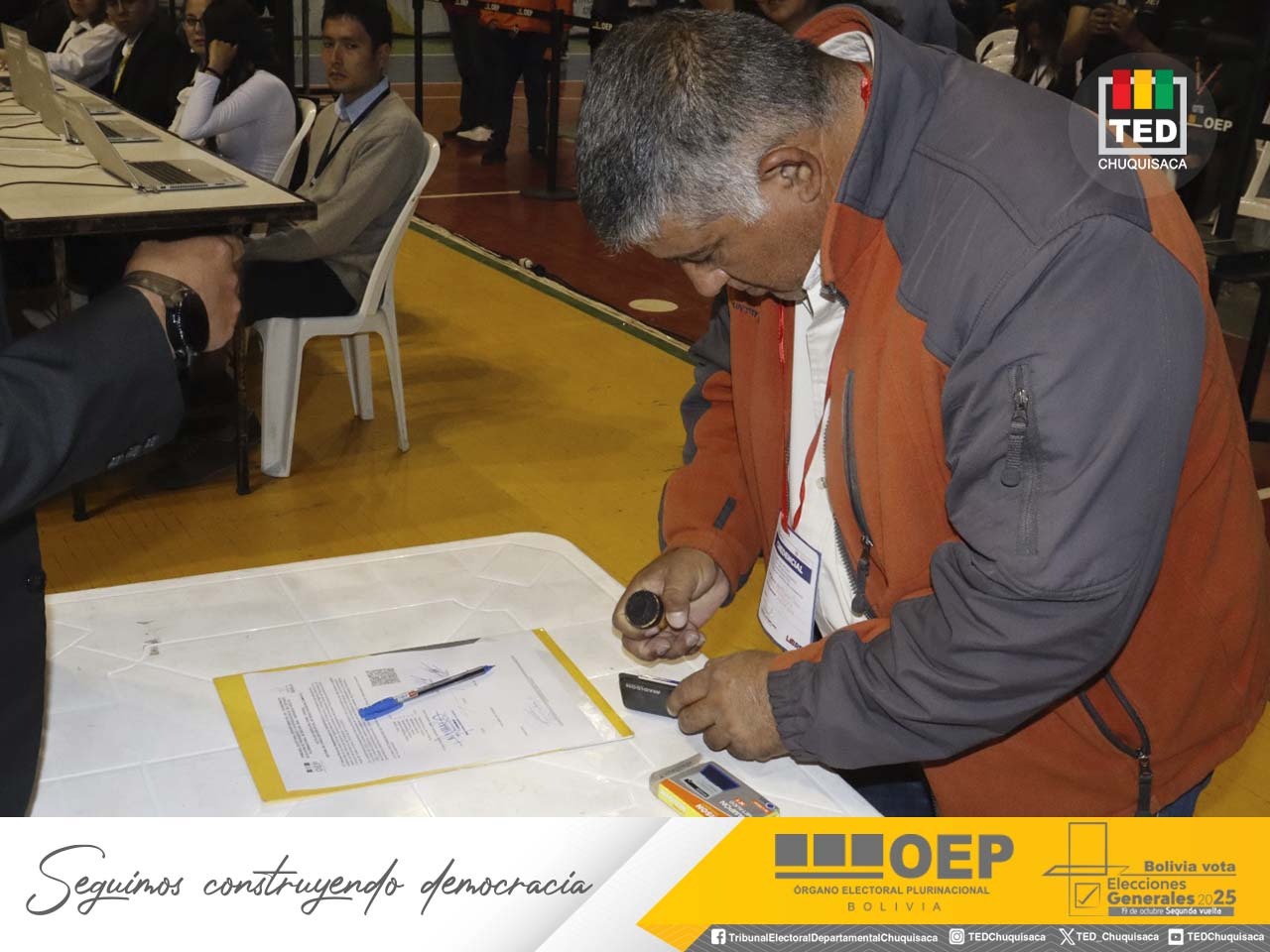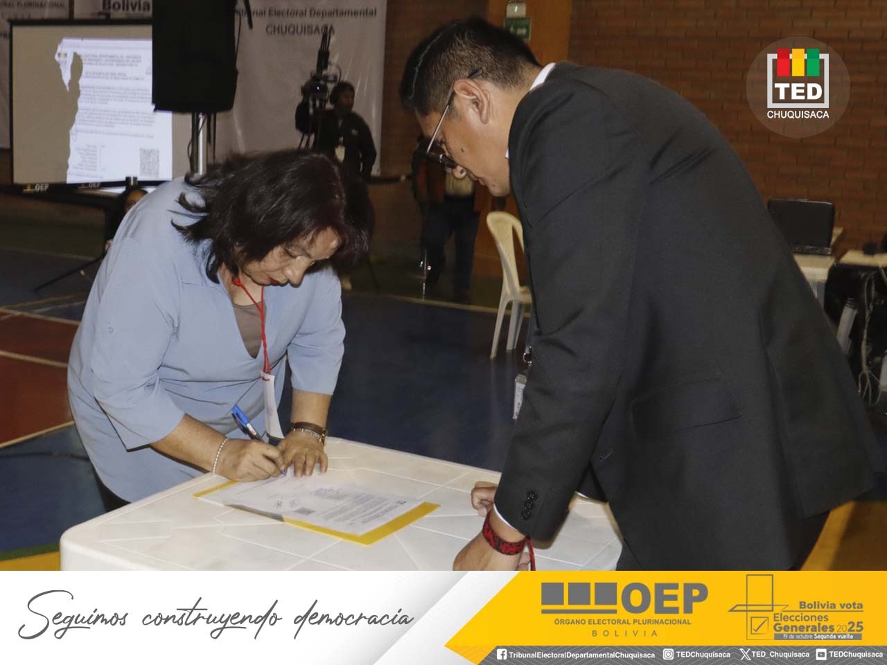 Durante la instalación de la Sala Plena se redactó el acta de puesta en cero del Sistema de Consolidación Oficial de Resultados de Cómputo, documento que fue firmado por los vocales del TED Chuquisaca y representantes de los partidos políticos que participan en este proceso electoral.