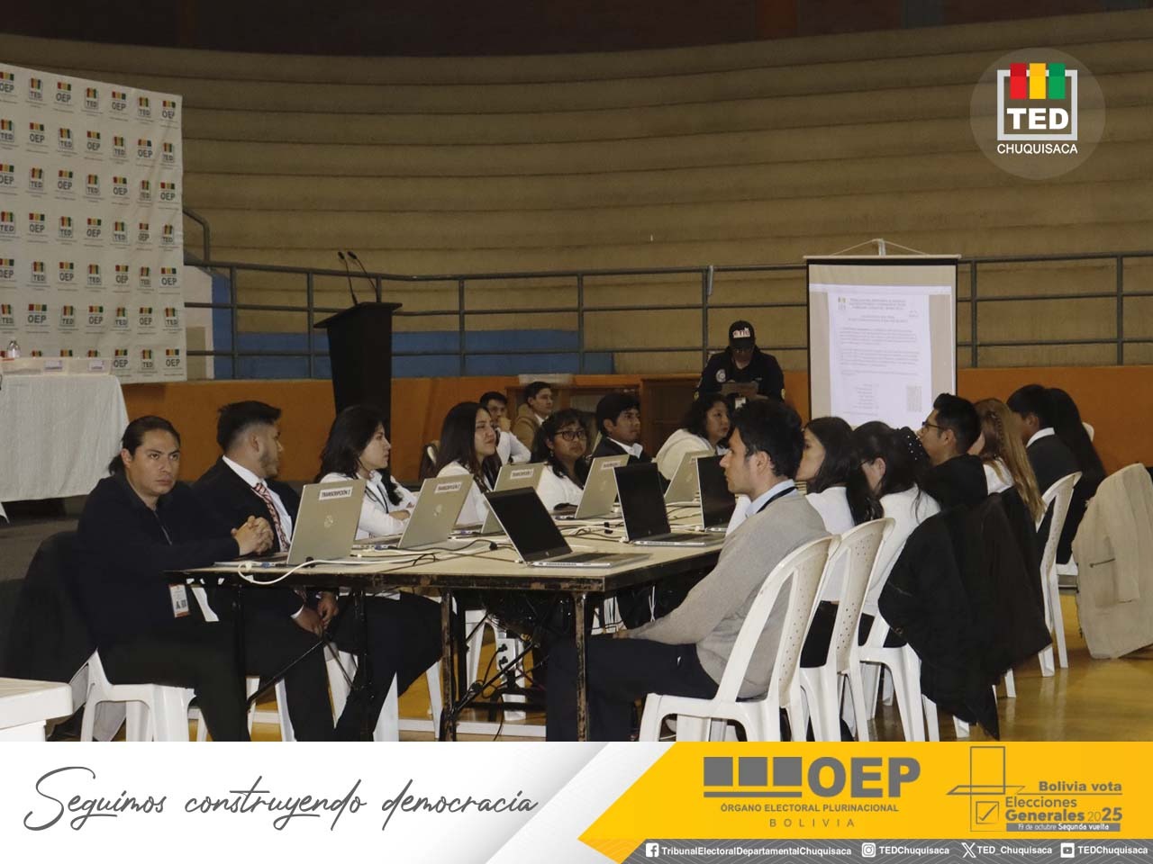 El Tribunal Electoral Departamental (TED) de Chuquisaca instaló la sesión de Sala Plena Permanente este domingo, a las 18:00, para llevar a cabo el cómputo departamental de la segunda vuelta de las Elecciones Generales 2025.